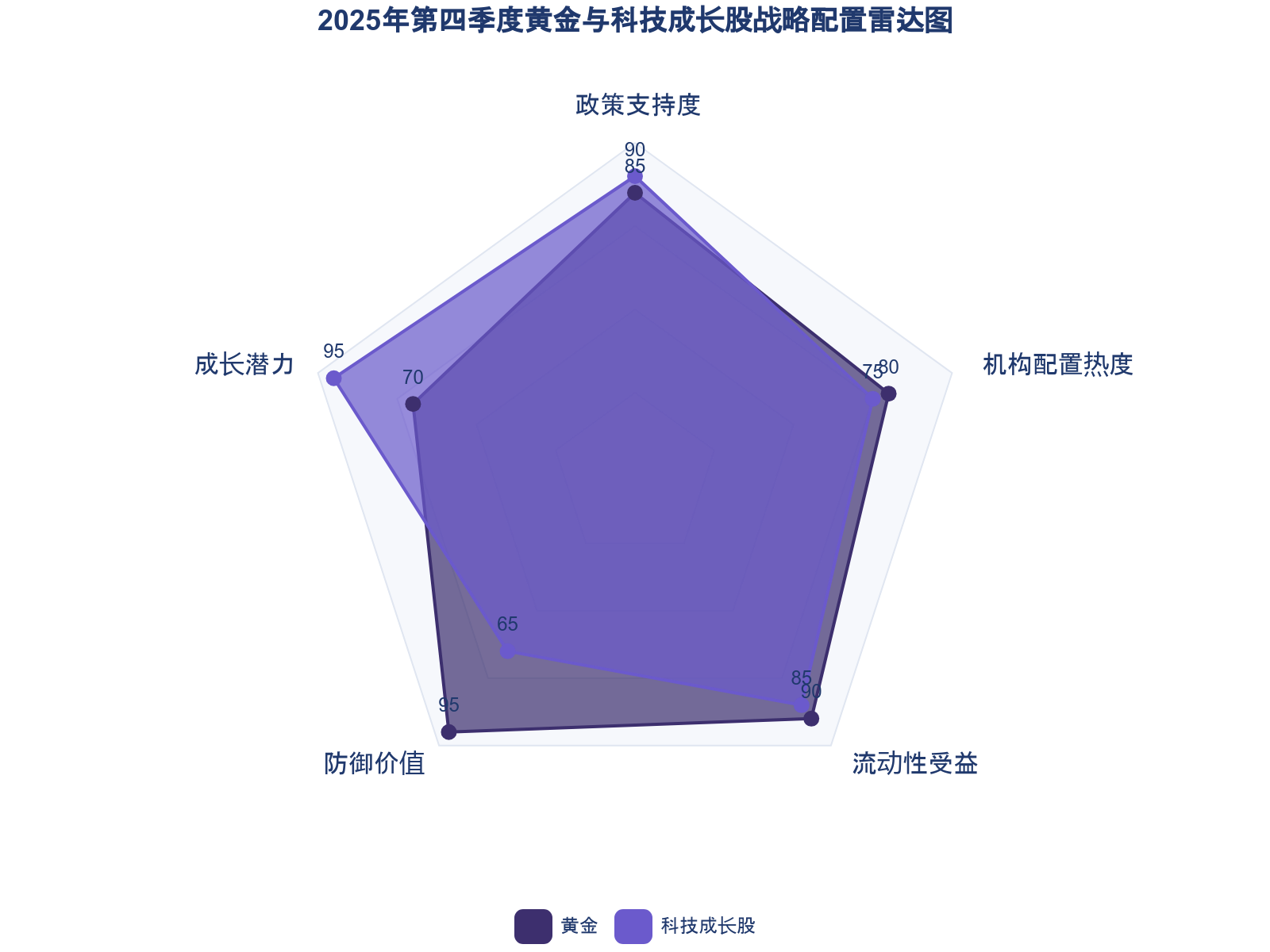 2025年四季度的宏观政策环境同步强化了黄金的防御价值与芯片产业的进攻潜力,使二者协同逻辑更具战略合理性。美联储降息周期推动实际利率下行至0.3%,叠加全球央行增持黄金储备至占外汇储备13.8%的趋势,为黄金提供长期支撑;同时国内“十五五”规划明确聚焦人工智能、半导体等科技方向,政策红利驱动芯片国产化率向40%突破。这种政策组合创造独特的配置窗口:黄金对冲全球“去美元化”与地缘不确定性风险(如2025年10月金价突破4064.6美元/盎司),而芯片ETF捕捉国产替代与技术突破的双重成长机遇。当前时点下,黄金ETF与科创芯片ETF的组合不仅实现资产类别的分散,更完成宏观风险因子与产业成长因子的跨维度覆盖,使防御与进攻目标在政策催化下形成共振。