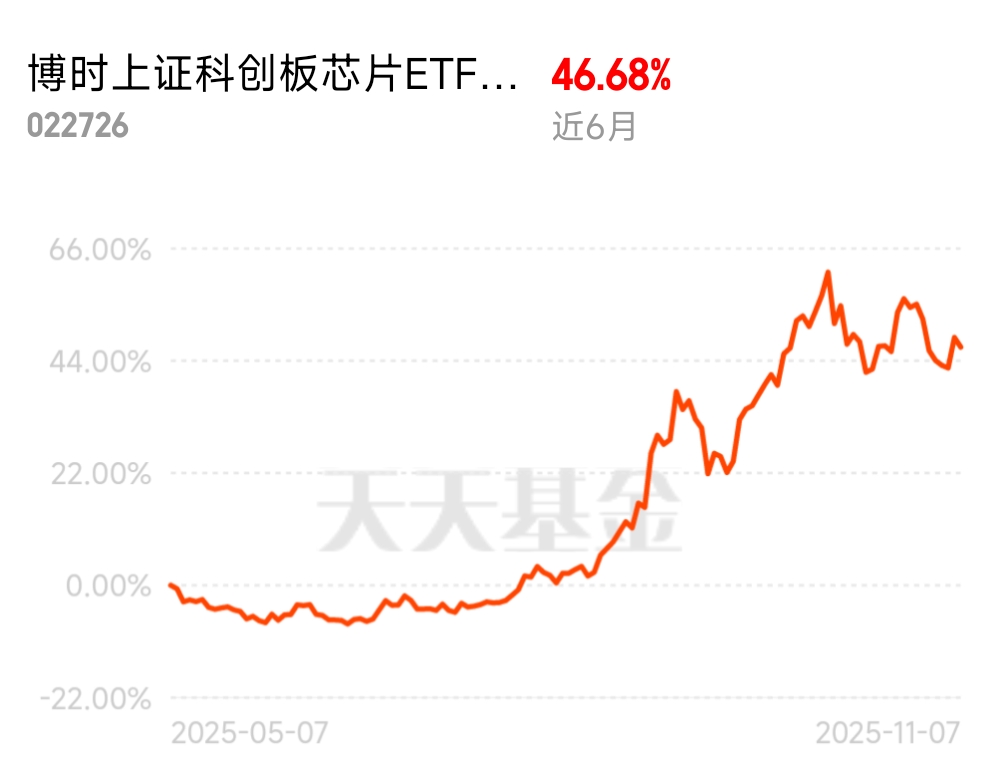 当然,选择“进攻的矛”不代表忽视风险,四季度的配置更需要“攻守平衡”的智慧。我的策略是将60%-70%的仓位配置于博时上证科创板芯片ETF发起式联接C,把握科技成长的主升浪;剩余30%-40%仓位搭配黄金ETF、短债基金等防御资产,形成风险对冲。这样的组合设计,既能在芯片赛道上涨时享受超额收益——参考该基金成立以来超56%的累计收益,其进攻性早已得到市场验证;又能在市场波动时通过防御资产平滑回撤,避免单一赛道波动带来的大幅亏损。