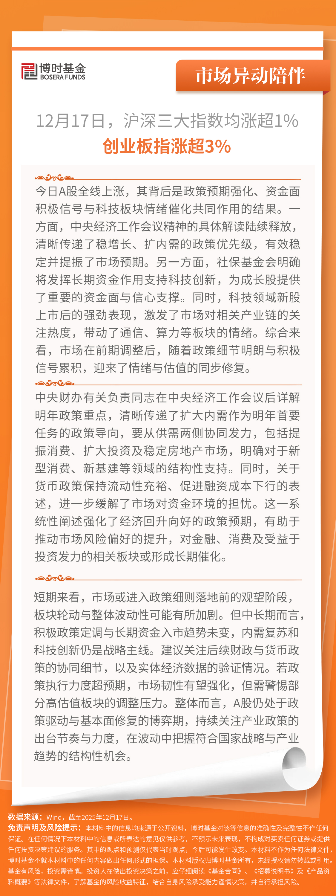 【异动陪伴】沪深三大指数均涨超1%,创业板指涨超3%
