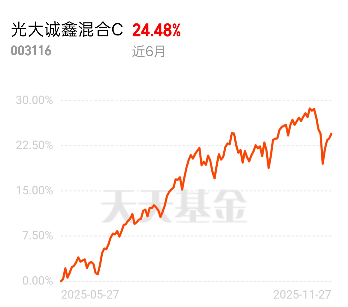 当下市场投资环境向好,政策加持下混合基金收益弹性提升,光大诚鑫混合C表现突出,近6个月业绩达到24.48%,收益表现优于不少同类产品,是性价比很高的理财选择。$光大诚鑫混合C$