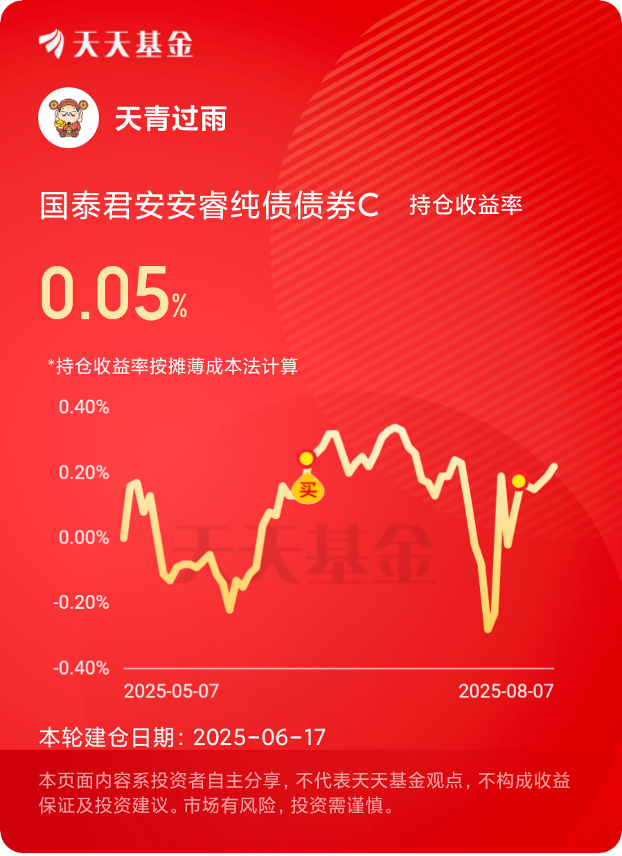 现在债市回暖,又连续收蛋了!$国泰君安安睿纯债债券C$ #晒收益#