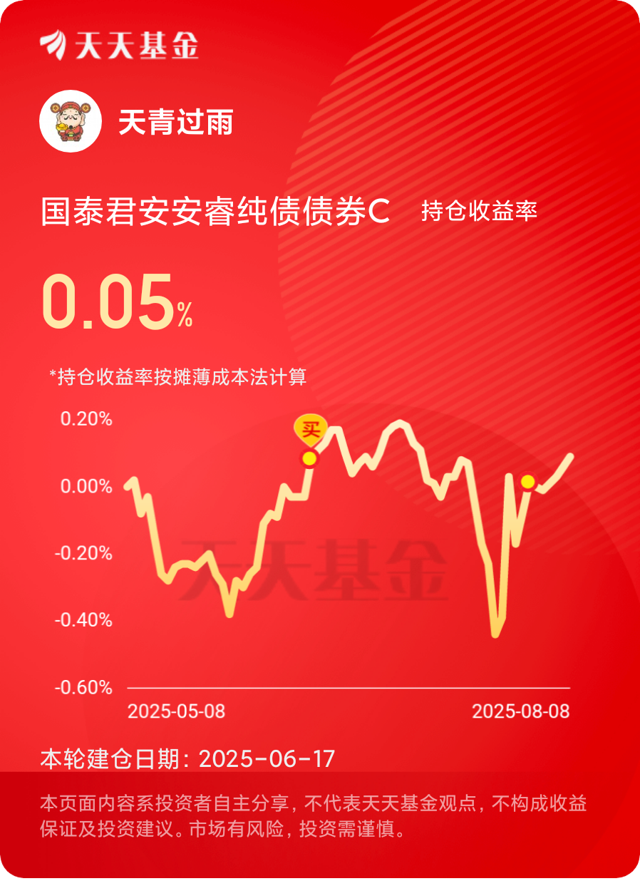 看着今天债市表现不太好,不知道碎几个$国泰君安安睿纯债债券C$ #晒收益#