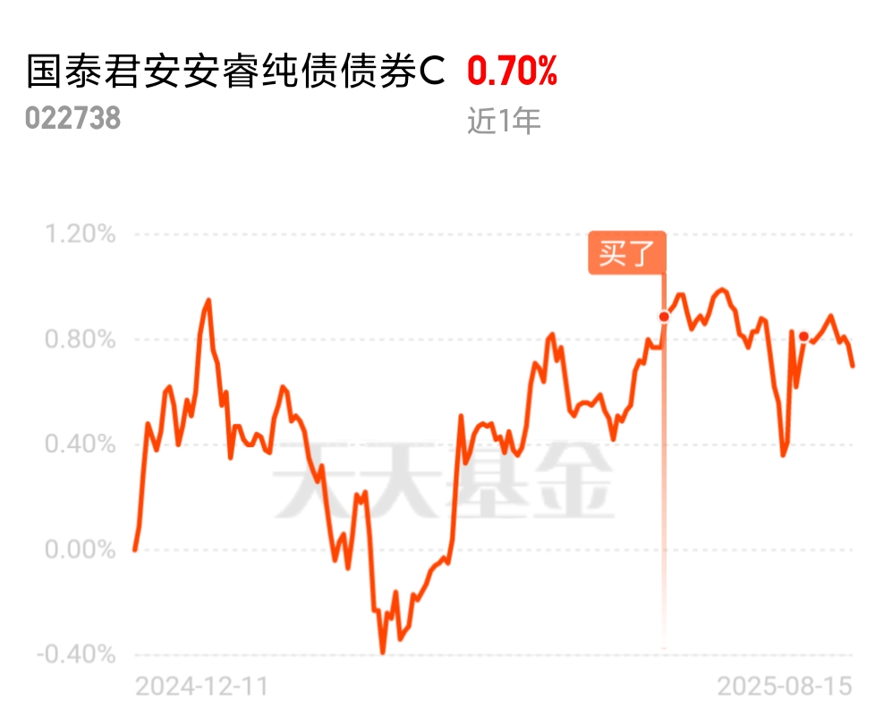 债整体来看回撤低,波动小,希望新的一周再多来点蛋$国泰君安安睿纯债债券C$