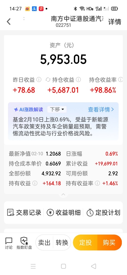 仓位重就是不给力,看到我′没仓位一连7连阳!继续关註此基做做小波段!