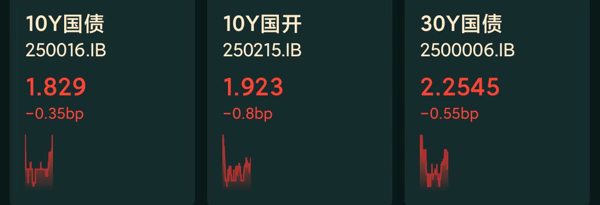 十年期国债收益率:1.829%,-0.35BP(国债收益率越跌,债市越涨)