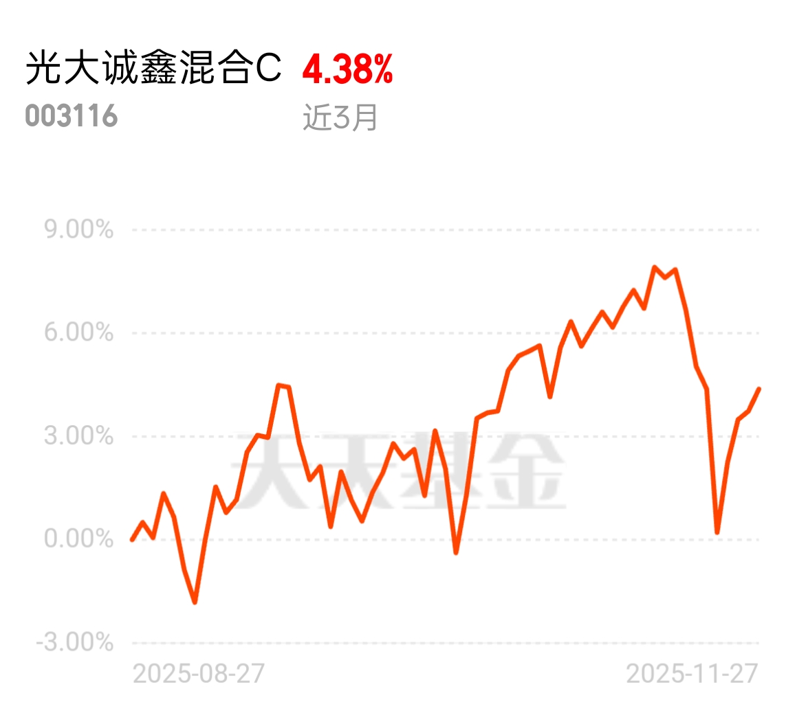 近期市场整体稳中有涨,稳健型混合基金备受投资者青睐,光大诚鑫混合C走势稳健收益可观,近3个月业绩有4.38%,扎实兑现投资收益,不管是短期持有还是长期布局都合适。$光大诚鑫混合C$