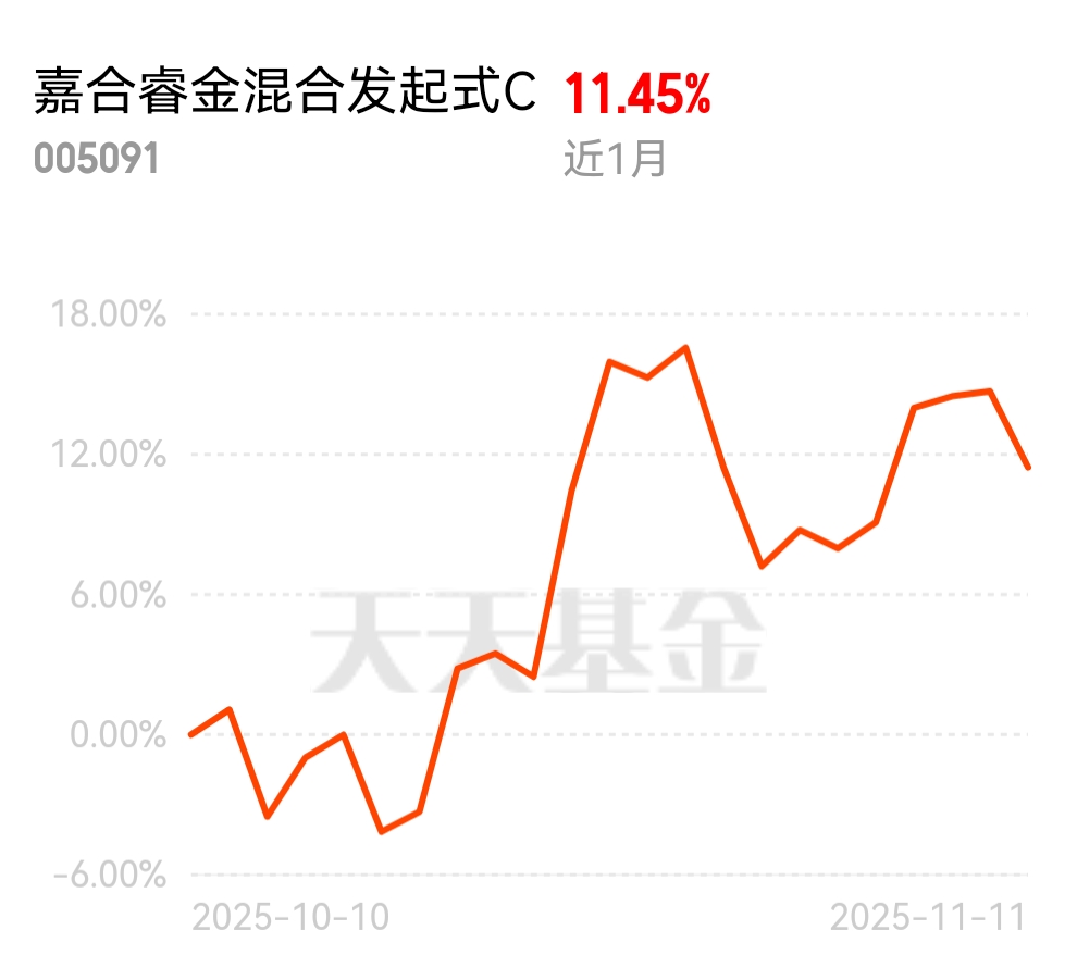 现在买基金,大家都爱追有明确主线的,CPO和存储芯片近期就是热门主线。嘉合睿金混合C就主打这俩方向,近1个月涨11.45%,一个月15个点左右,适合想跟风的朋友。