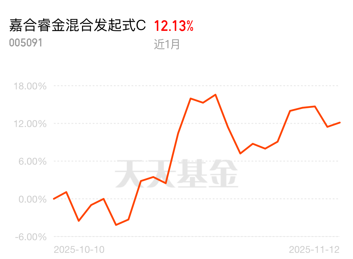 最近A股市场科技板块全面开花,CPO和存储芯片更是涨得如火如荼,市场情绪高涨。嘉合睿金混合C踩中这波行情,近一个月收益12.13%,高涨情绪带来高涨收益。
