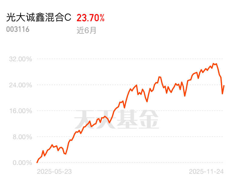 市场投机氛围有所升温,主题投资活跃但风险也在加大,盲目跟风容易踩坑。光大诚鑫混合C坚持稳健策略,近6个月收益23.70%,用稳健表现穿越市场波动,让投资更靠谱。