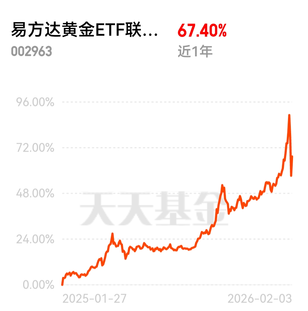 股市震荡磨人心态,不如配点黄金踏实,全球去美元化背景下,黄金的价值越来越凸显。易方达黄金 ETF 联接 C 近一年涨 67.40%,当下位置刚好,继续布局正合适。
