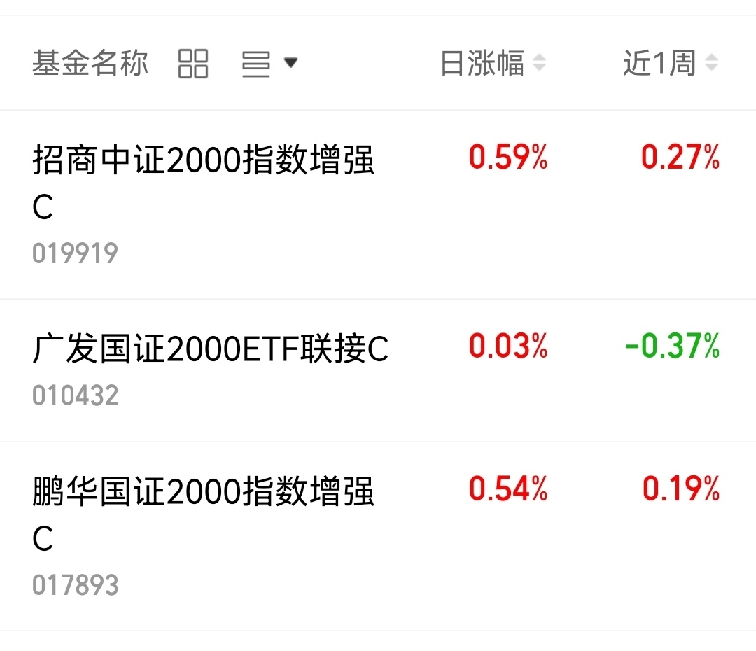 $招商中证2000指数增强C$ 近一周涨幅0.27%