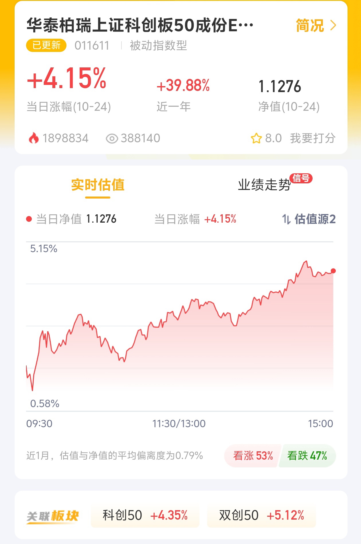 今天科创50的表现真亮眼,涨了4.2%不说,盘中还创下了近期高点,板块里一堆股票都在涨,明显能感觉到科技行情的热度起来了。不过科创板直接炒股门槛高,自己选个股又没那个本事,很容易踩坑。这种时候选华泰柏瑞就省事儿多了,它把科创板里市值大、流动性好的公司都包含了,等于跟着整个硬科技板块走。而且C类免申购费,持有超过7天赎回还免费,不管是短期试试水还是长期拿着都合适,普通人参与科技红利的好路子 。投资有风险,决策要理性。
