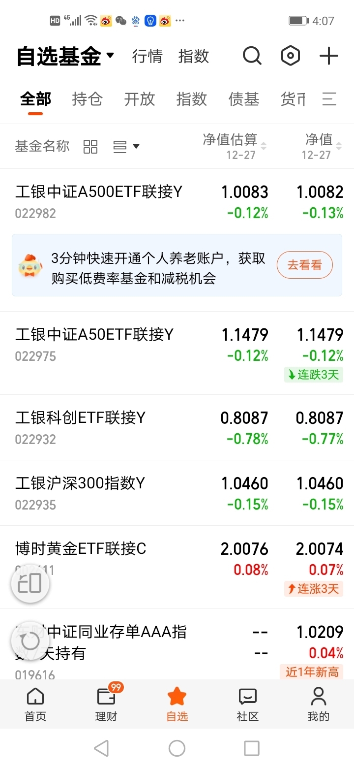#当养老遇上指数#打卡第一天。2024年12月12日,人社部等五部门发布《关于全面实施个人养老金制度的通知》,明确将指数基金纳入个人养老金产品目录。同日,证监会发布最新个人养老金基金名录,新增85只权益类指数基金,值此,个人养老金也可以投指数基金了。
