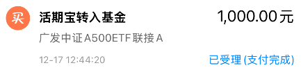 我继续加仓$广发中证A500ETF联接A(OTCFUND|022424)$1000元,现在市场进入的混沌期,除了CPO热度高,其他主线都不够明朗,但整体青春对明年的行情预期还是比较高的,趁最近震荡盘整,我继续低吸一笔大中盘宽基A500,能跟上市场整体行情,日常波动也不像行业基那么大,适合定投拿长期。