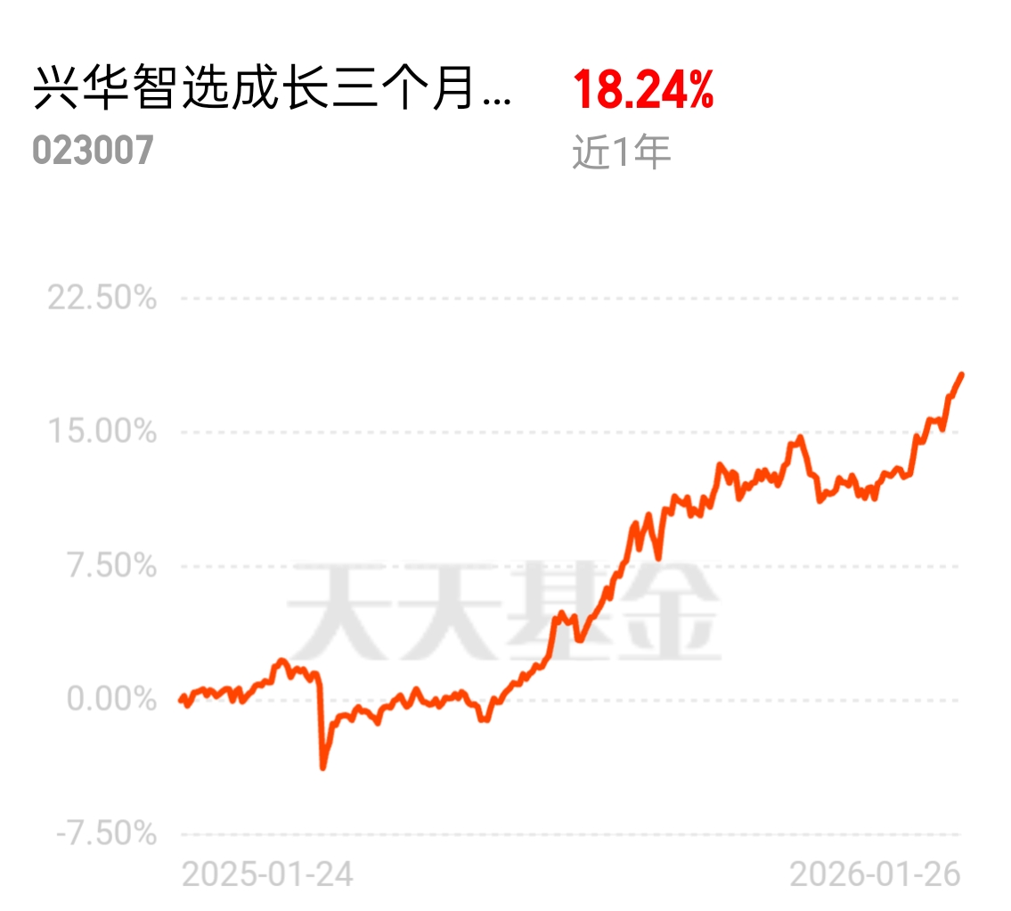 投资就像一场长跑,2025年的稳健收益是兴华智选给我的底气。新的一年,我会继续坚定持有,带着这份信任与耐心,与基金一同奔赴更广阔的成长空间,也期待在专业配置的护航下,收获更多属于普通投资者的甜蜜果实。@兴华基金 @天天基金创作者中心 #继续新高!金价突破5200美元大关# #AI助手Clawdbot爆火!AI应用迎布局机会?# #太空光伏成风口:供电太空算力#