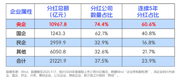 而从分红角度来看,央国企经营相对稳定,有更强的分红意愿,分红水平领先。