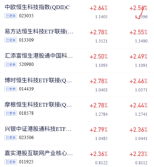 $易方达恒生科技ETF联接(QDII)C$ 2.55%。