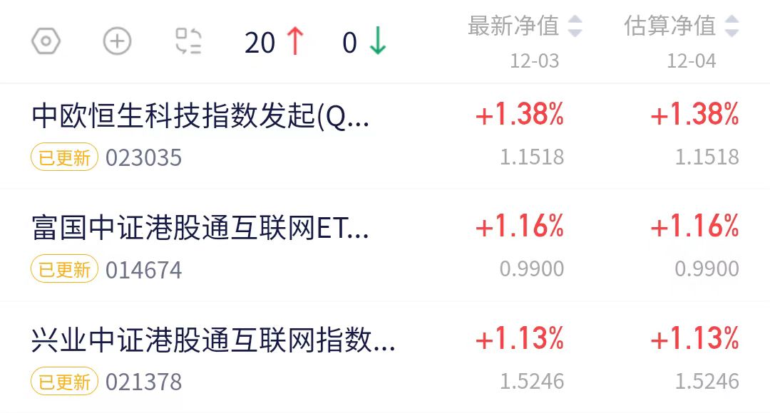 $中欧恒生科技指数发起(QDII)C(OTCFUND|023035)$上涨1.38%$富国中证港股通互联网ETF发起式联接C(OTCFUND|014674)$上涨1.16%