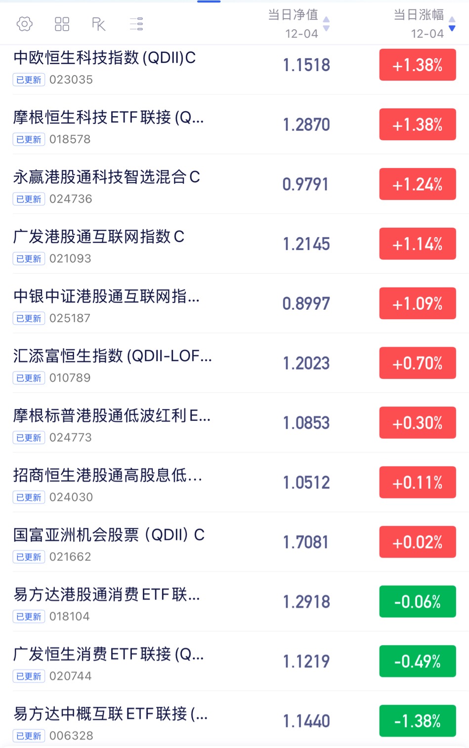 $中欧恒生科技指数发起(QDII)C$ :今日上涨1.38%!