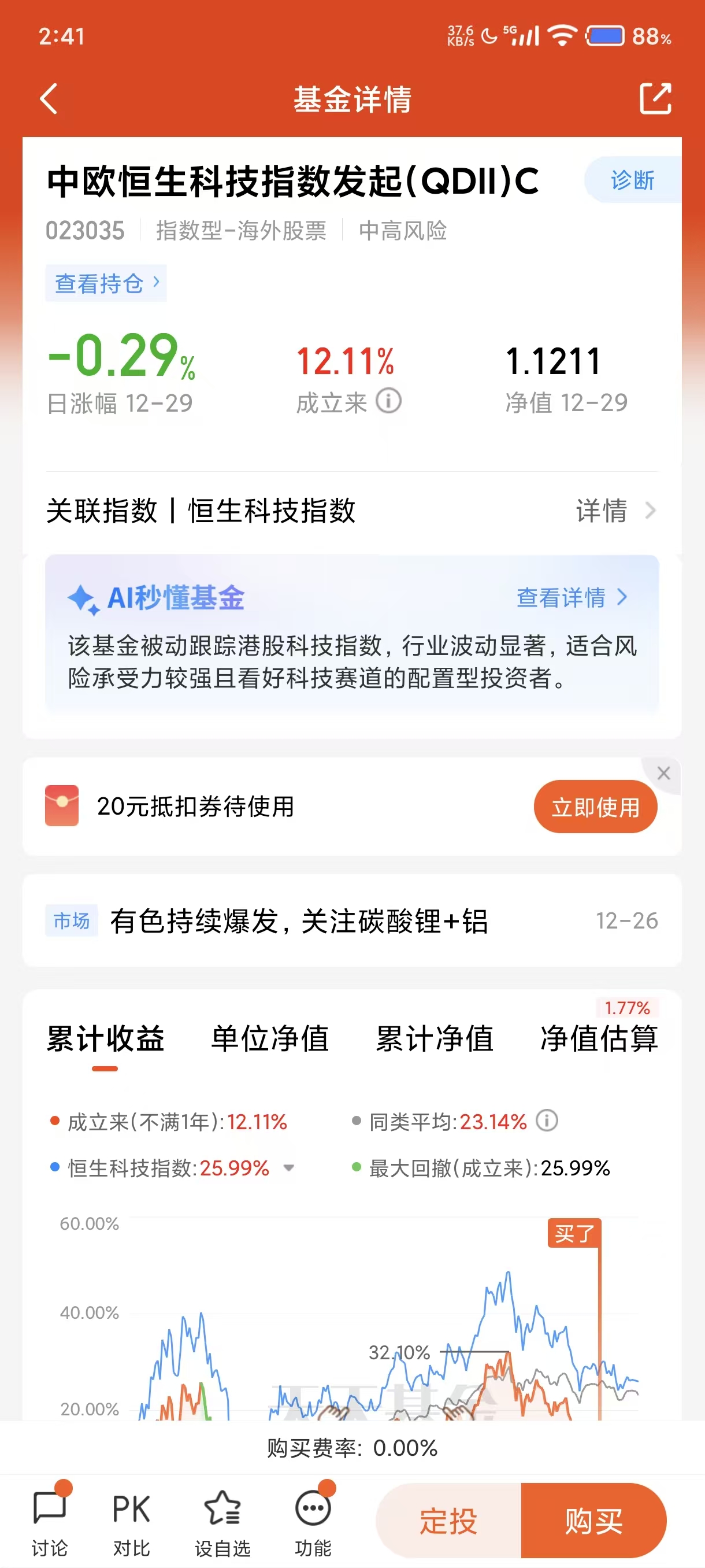 今天我选择加仓5000元中欧恒生科技指数发起(QDII)C(023035),基金跟踪恒生科技指数,涵盖互联网平台、金融科技、云计算、自动驾驶等前沿领域。核心成份股包括腾讯控股、阿里巴巴-SW、美团-W、小米集团、京东集团、快手-W、百度集团、网易、理想汽车等知名科技企业。$中欧恒生科技指数发起(QDII)C(OTCFUND|023035)$