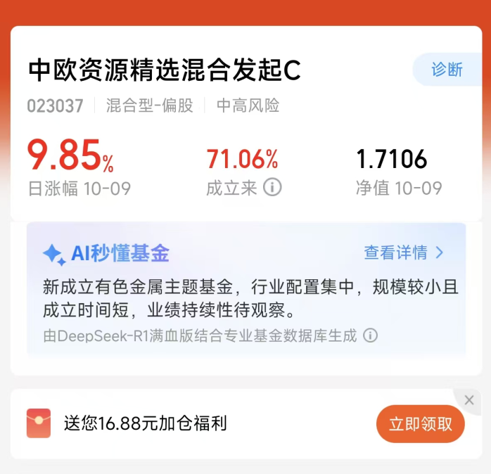 更关键的是,这只基金今天在详情页还有16.88元红包活动,先到先得!我估计这波热度很快就要被发现了,想上车的真得抓紧。中欧资源精选,用实力证明什么叫“强者恒强”!