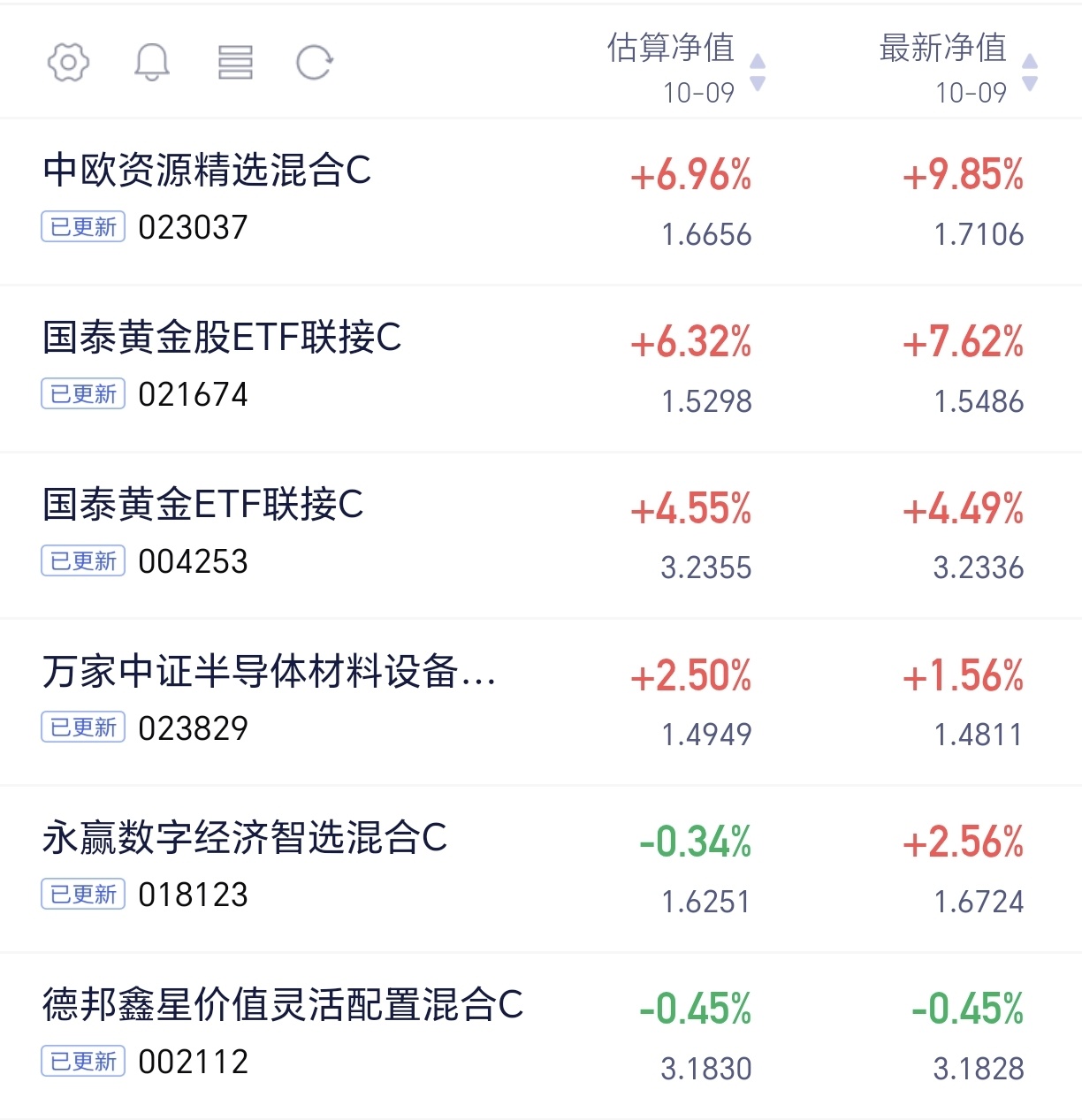 节后首个交易日,行情还是很有意思的,A股整体来说赚钱效应明显,尤其是有色的表现尤其突出,不过买指数是真的不如买主动基刺激啊。$中欧资源精选混合发起C(OTCFUND|023037)$上涨近10%,真的是太强了,果然选对经理,简直就是躺赢,眼下还有红包,今天净值更新来了