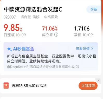 $中欧资源精选混合发起C(OTCFUND|023037)$涨9.85%
