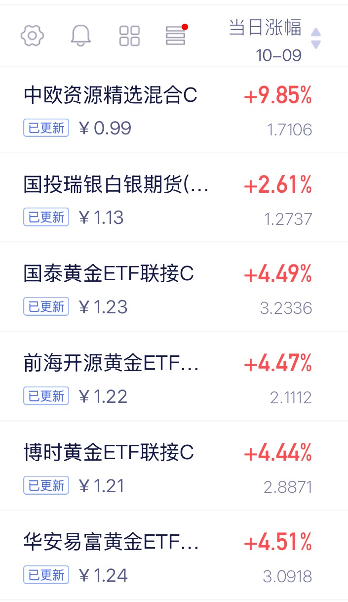 今天黄金涨疯了$中欧资源精选混合发起C$ 大涨近10%