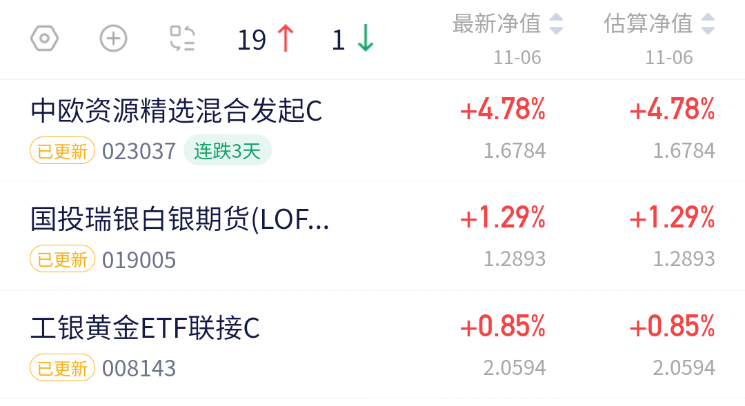 $中欧资源精选混合发起C(OTCFUND|023037)$上涨4.78%