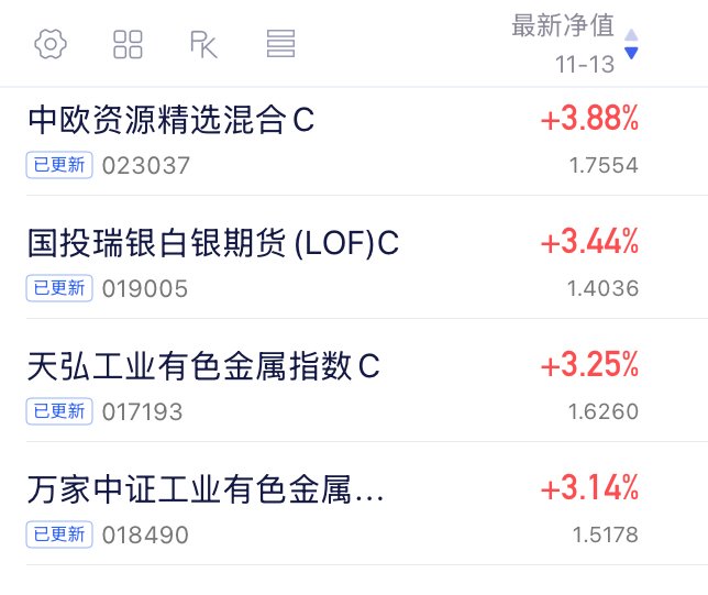 $天弘工业有色金属指数C(OTCFUND|017193)$+3.25%