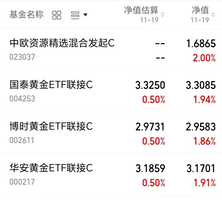 今日A股整体缩量震荡、个股呈现跌多涨少格局,有色板块成为领涨主线,黄金概念受避险情绪催化走强。看看净值更新表现: