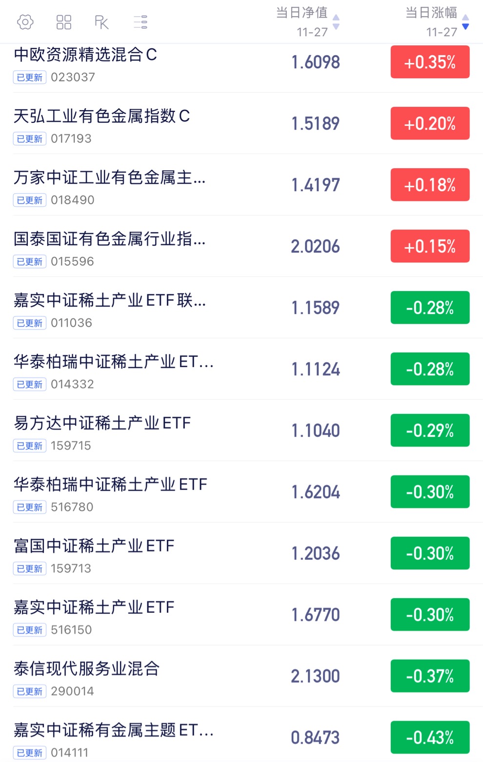 有色金属资源类看过来!中欧资源精选混合c今日上涨0.35%!