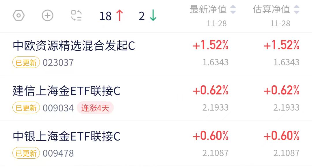 $中银上海金ETF联接C(OTCFUND|009478)$今天上涨0.6%