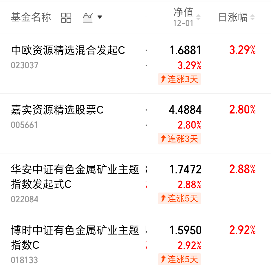 $嘉实资源精选股票C(OTCFUND|005661)$上涨2.8%