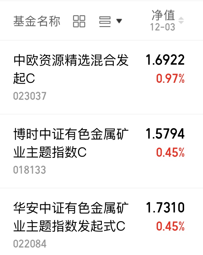 $博时中证有色金属矿业主题指数C(OTCFUND|018133)$今天上涨0.45%