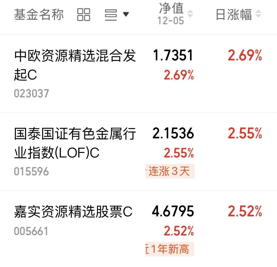 $国泰国证有色金属行业指数(LOF)C(OTCFUND|015596)$今天上涨2.55%