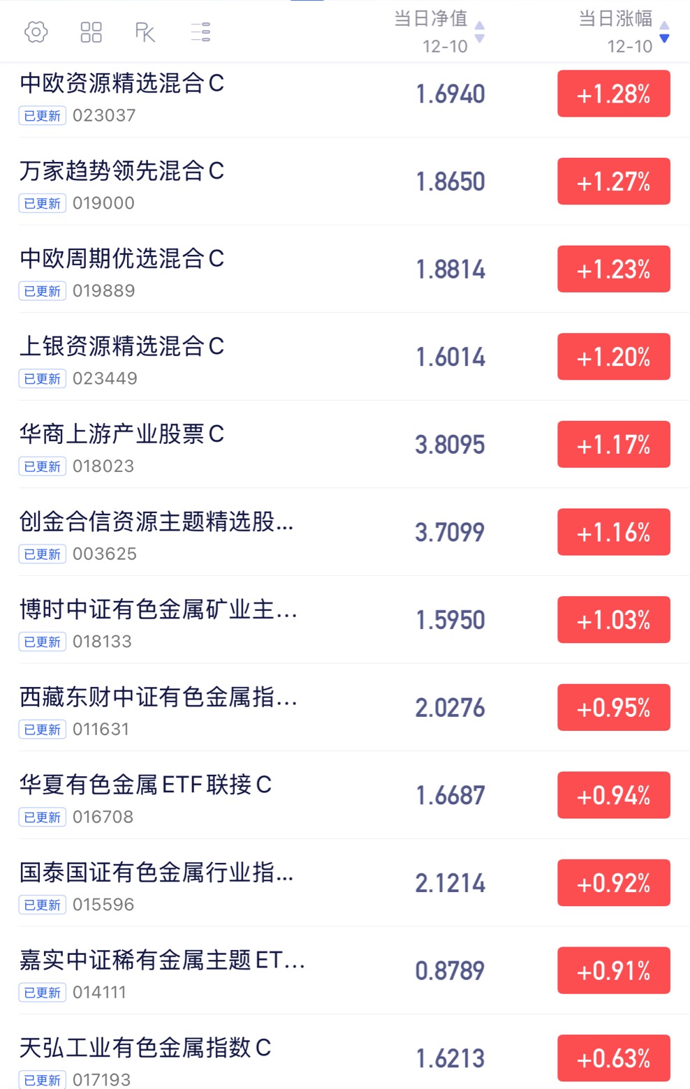 有色金属资源看过来!中欧资源精选混合C今日上涨1.28%!