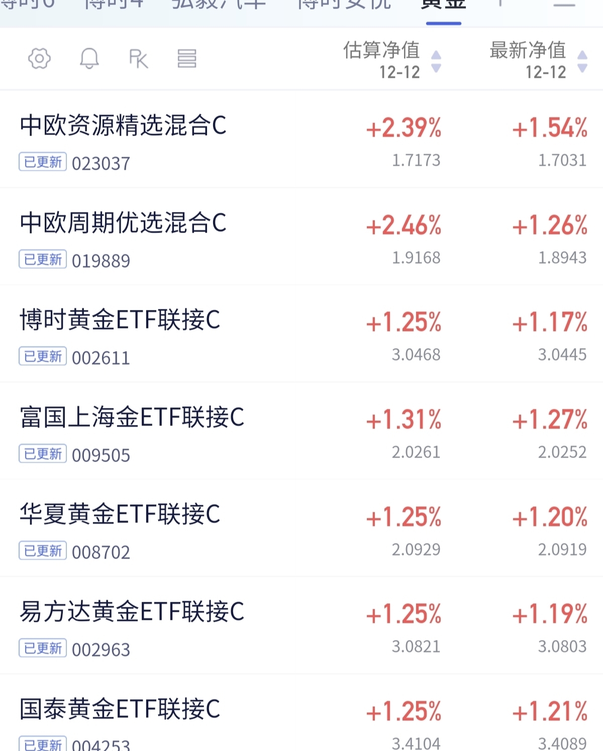 今天的黄金,有色资源表现都不错。$中欧资源精选混合发起C$ 是主动的资源混合基金。今日涨幅1.54%,持仓覆盖更全面,同类业绩长期做到了优秀。