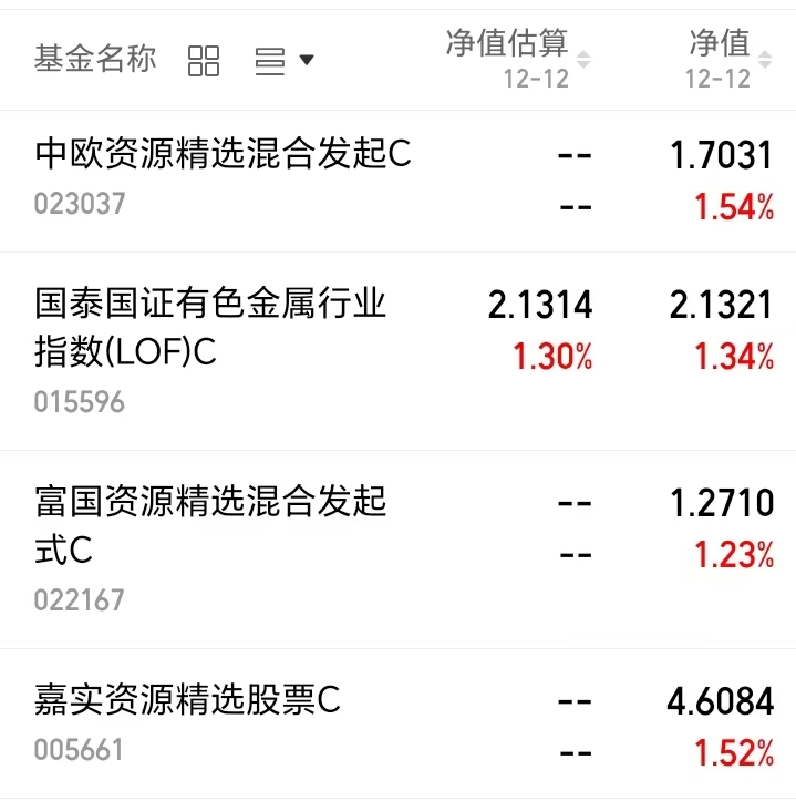 $嘉实资源精选股票C(OTCFUND|005661)$今天上涨1.52%;