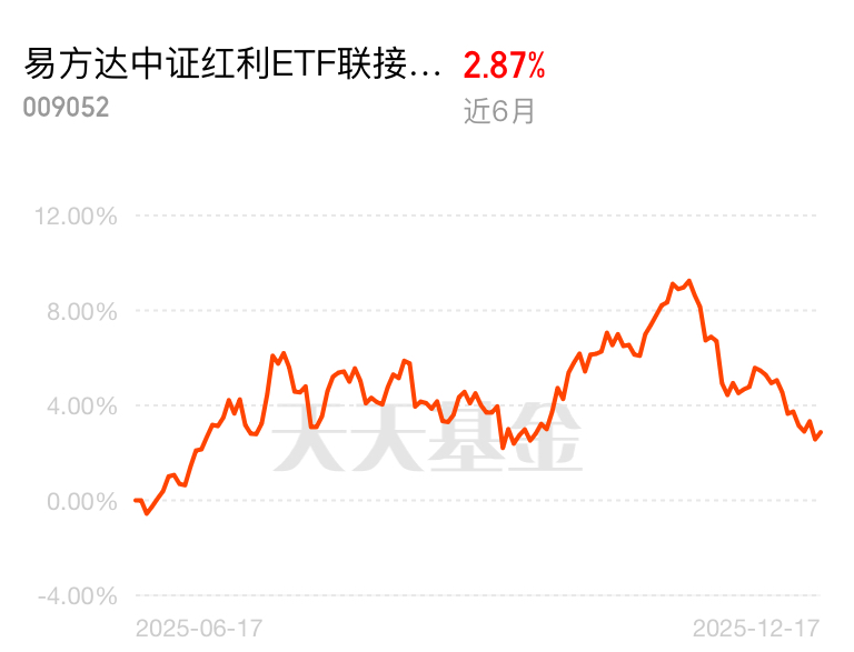 近期市场波动加大,不少基金回调,红利类相对稳健。易方达中证红利 ETF 联接发起式 C 近 6 个月涨 2.87%,抗跌属性在线。逢低加仓分批来,避免一次性满仓,留足后路。