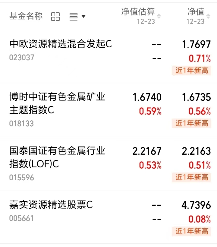 A股市场今天盘面呈现指数红盘、个股普跌格局,早盘的时候还好好的,下午好多板块都回落比较明显,差点吓到我了,还好有色金属逆势走强,我的$中欧资源精选混合发起C(OTCFUND|023037)$今天能收到0.71%涨幅,比其他基来表现不错的呢。
