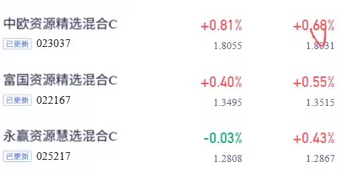 $中欧资源精选混合发起C$ 上涨0.68%