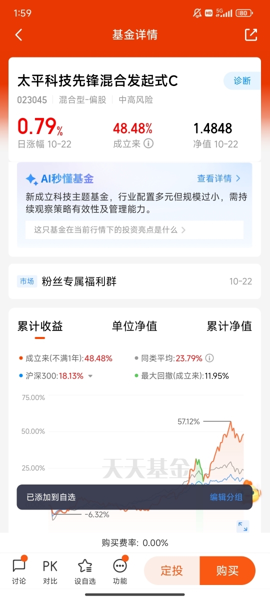 其次,基金的发起式机制让我看到了管理人的诚意与信心。发起式基金的核心优势在于利益绑定——基金公司、高管或基金经理必须拿出真金白银认购,且持有满三年。太平科技先锋混合C作为发起式基金,管理人的1000万自有资金与投资者共担风险、共享收益,这意味着基金经理会更谨慎地管理资产,更注重长期业绩而非短期波动。对投资者来说,这种机制相当于多了一层保障,毕竟没人会拿自己的钱开玩笑。