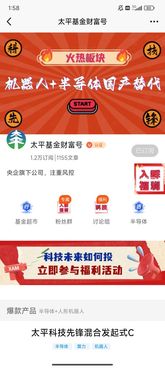 最近科技板块的调整让不少人犹豫,但在我看来,这根本不是风险信号,而是妥妥的"倒车接人"机会。科技行业的上涨趋势已经明确形成,短期波动不过是前进中的插曲,现在正是布局的黄金窗口期。反复研究后,我发现太平科技先锋混合发起式C(023045)精准踩中了半导体+机器人的核心赛道,堪称当前科技投资的优选标的,值得重点关注。