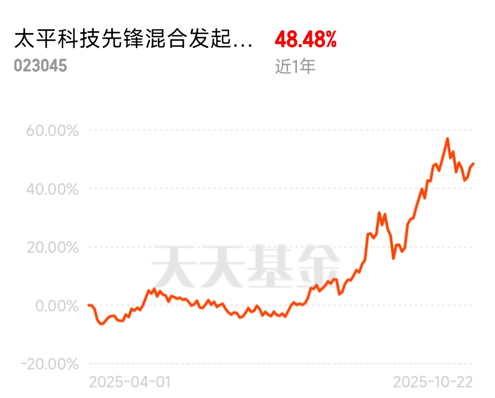总之,在科技行业确定性增长的大背景下,太平科技先锋混合发起式C凭借精准的赛道布局、利益绑定的发起式机制、优秀的管理能力和灵活的产品设计,成为了我重点关注的标的。当前板块调整带来的"倒车接人"机会难得,与其在上涨后追高,不如趁现在布局。科技未来值得期待,而这只基金或许就是分享这份红利的优质工具。当然,投资有风险,选择仍需结合自身风险承受能力,但对坚定看好科技趋势的投资者来说,它无疑是当下的优选之一。$太平科技先锋混合发起式C$