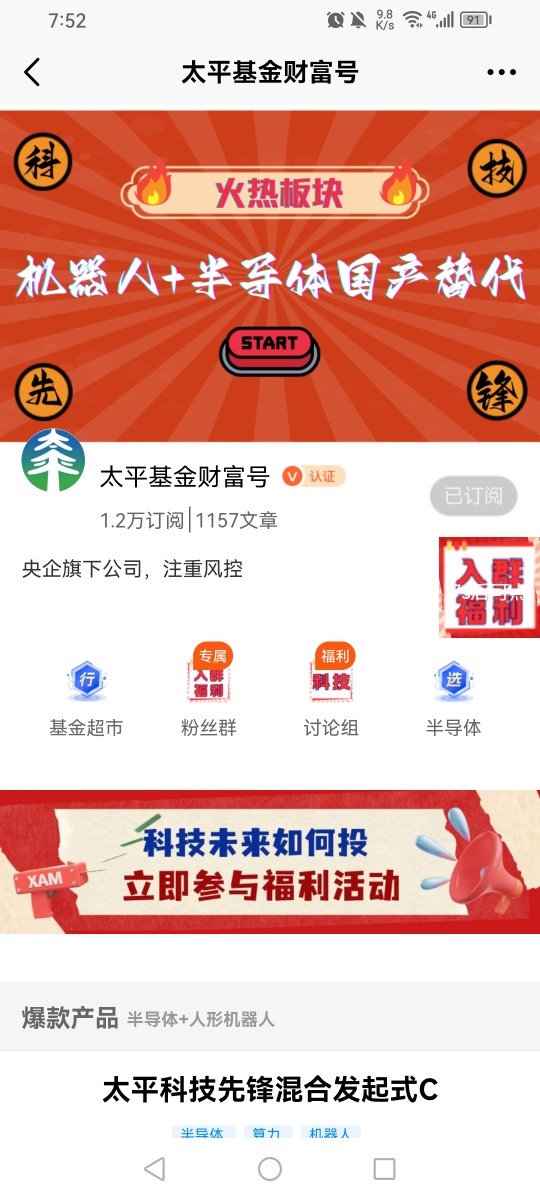 所以这一次,我不再犹豫,已经将太平科技先锋混合发起式C加入自选并开启了定投。我相信,随着科技行业的持续发展,这只基金能够充分挖掘半导体和机器人领域的投资价值,为我带来可观的长期回报。同时,也想把这只基金推荐给更多和我一样,希望把握科技投资机遇却不知如何入手的投资者,与其在观望中继续错过,不如尽早布局,用定投的方式陪伴科技行业成长,共享发展红利。@太平基金
