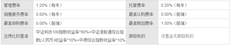 该基金的投资范围广泛,包括国内依法发行上市的股票(含主板、创业板、存托凭证)、港股通标的股票、债券、资产支持证券、货币市场工具、金融衍生品等。股票投资占基金资产的60%-95%,其中港股通标的股票投资比例不得超过股票资产的50%,投资于科技主题股票的比例不低于非现金基金资产的80%。基金的业绩比较基准为:中证科技100指数收益率80%+中证港股通综合指数(人民币)收益率10%+中债综合指数收益率10%。
