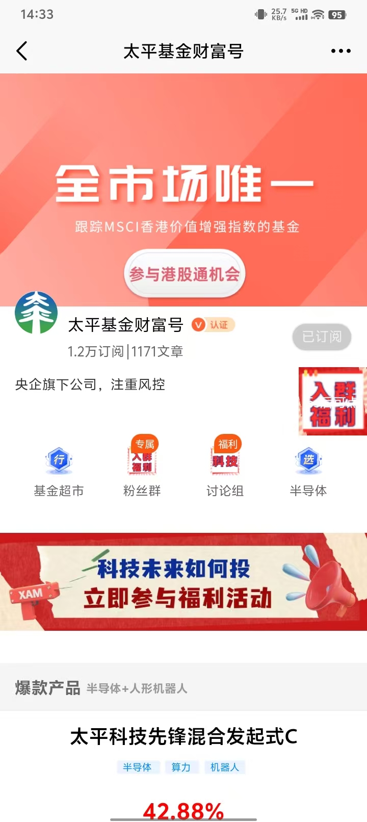 #科技未来如何投#在当前科技浪潮席卷全球的背景下,半导体与机器人作为AI时代的关键基础设施,正迎来前所未有的发展机遇。由基金经理徐昊掌舵的太平科技先锋混合发起式C基金(023045)自2025年4月成立以来表现亮眼,成为场外投资者布局科技赛道的新选择。