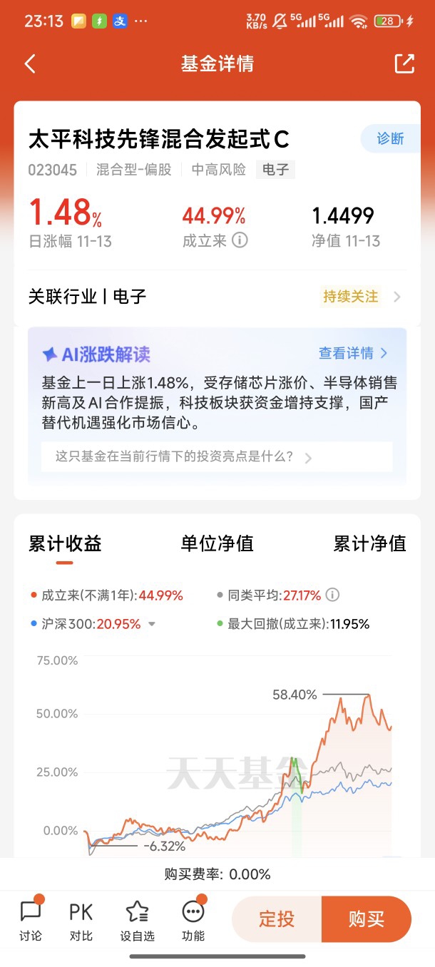 接触投资三年,踩过消费板块的震荡,试过新能源的起伏,最终让我坚定持有并持续定投的,始终是科技赛道——而太平科技先锋混合发起式C,正是我锚定这个赛道的核心选择。这段投资经历,不仅让我收获了实实在在的收益,更让我读懂了科技投资的底层逻辑:唯有坚守趋势、信任专业,才能穿越短期波动,拥抱长期成长。