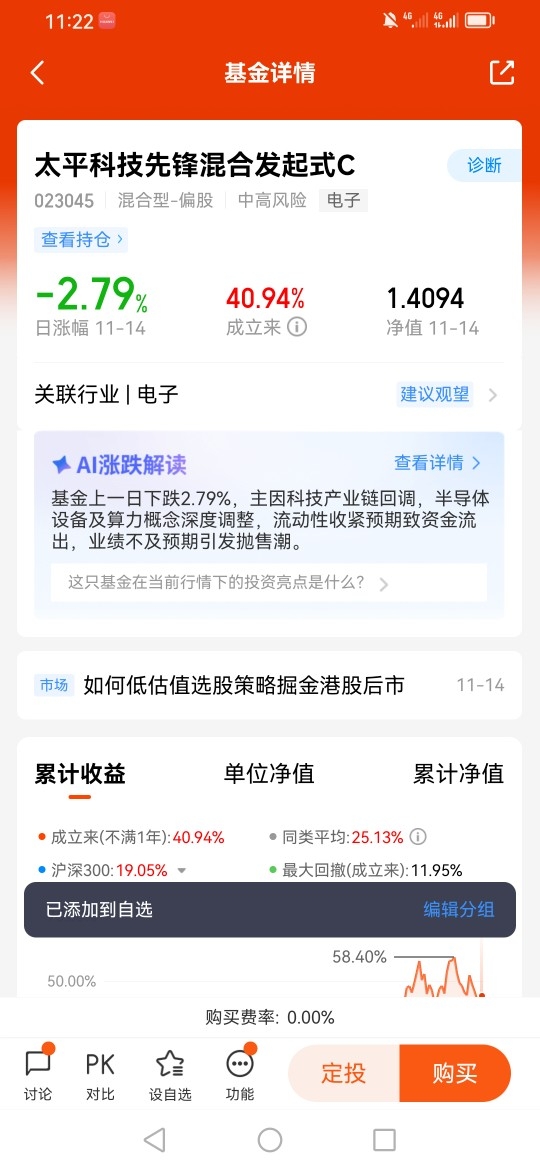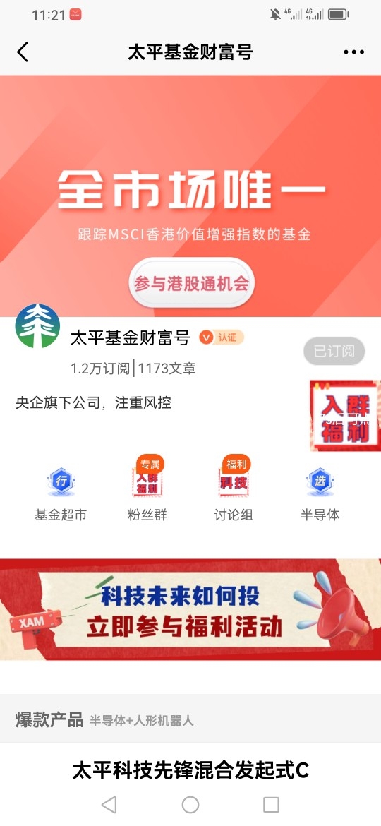因此我选择了太平科技先锋混合发起式C(023045),因为太平基金在投资领域相当专业。@太平基金